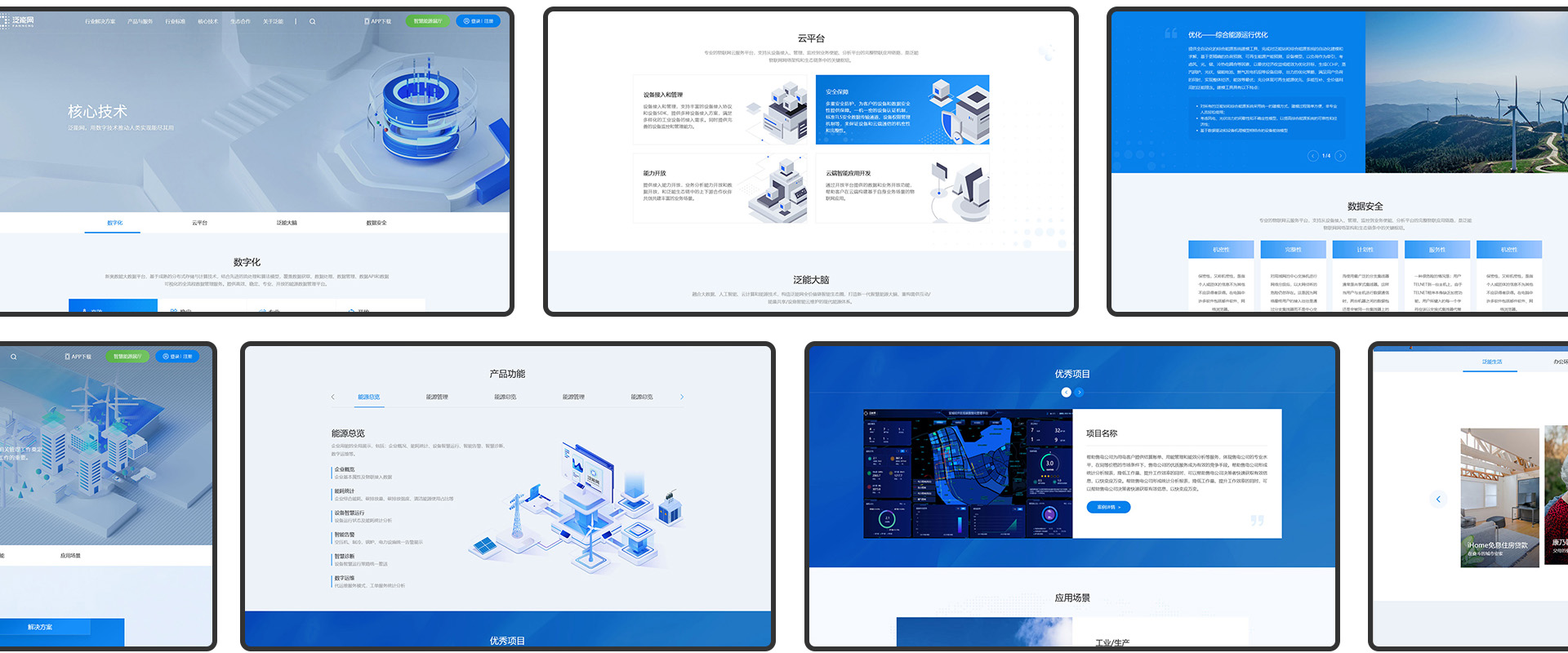 本內頁設計以 “科技感 + 專業感 + 場景化”為核心調性,通過模塊化布局、2.5D 視覺語言與清晰的信息層級,高效傳遞泛能網的技術實力與產品價值。既滿足了專業用戶對技術細節的需求,也通過場景化展示降低了普通用戶的理解門檻,實現了 “品牌傳遞 + 業務轉化” 的雙重目標。